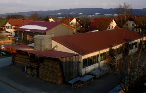 2005 ist unsere Schreinerei (im Bild vorne rechts) von Rosshimmel 18 nach Rosshimmel 21 in ein Gebäude umgezogen, das wir erwerben konnten. 2006 erfolgte der Anbau eines Holzlagers (im Vordergrund des Bildes) und der Neubau einer Montagehalle (links im Bild). Diese komplettieren seither die Produktion auf einem zusammenhängenden Grundstück. Unser Wohnhaus mit Büro und Intonation ist links im Hintergrund zu sehen.